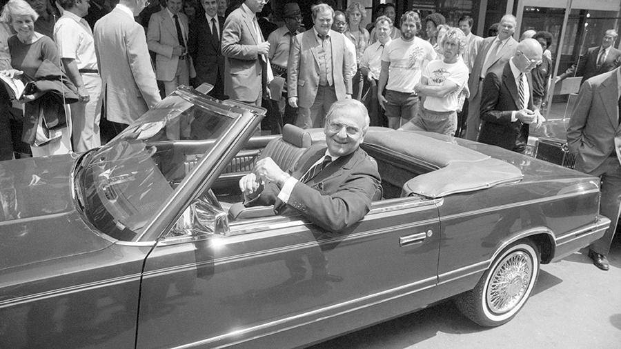 Ли Якокка за рулем автомобиля Chrysler LeBaron Convertible