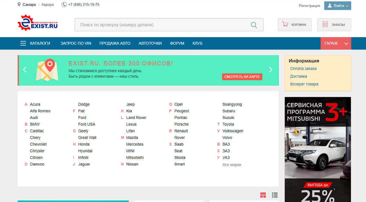 Exist является популярным российским оптовым поставщиком автомобильных запчастей. Они обеспечивают минимальные сроки доставки заказа более чем в 200 городах России по статистике на 2021 год. Каталог компании состоит из категорий: автохимия, шины и диски, автоэлектроника, запчасти для ТО, аксессуары и оригинальный каталог автозапчастей.