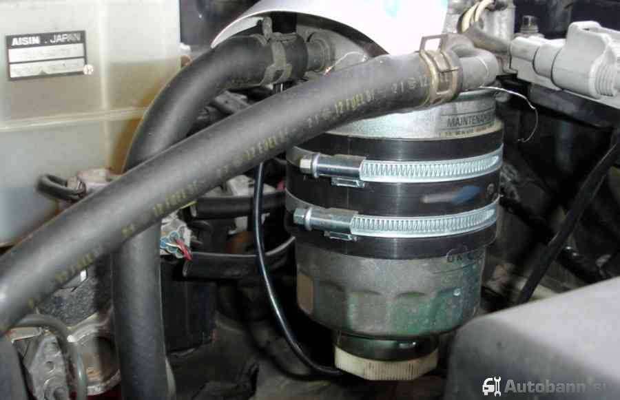 Чтобы топливный фильтр в любое время года работал без перебоев, на него накладывается специальный бандажный подогреватель, который подключается к аккумулятору машины.