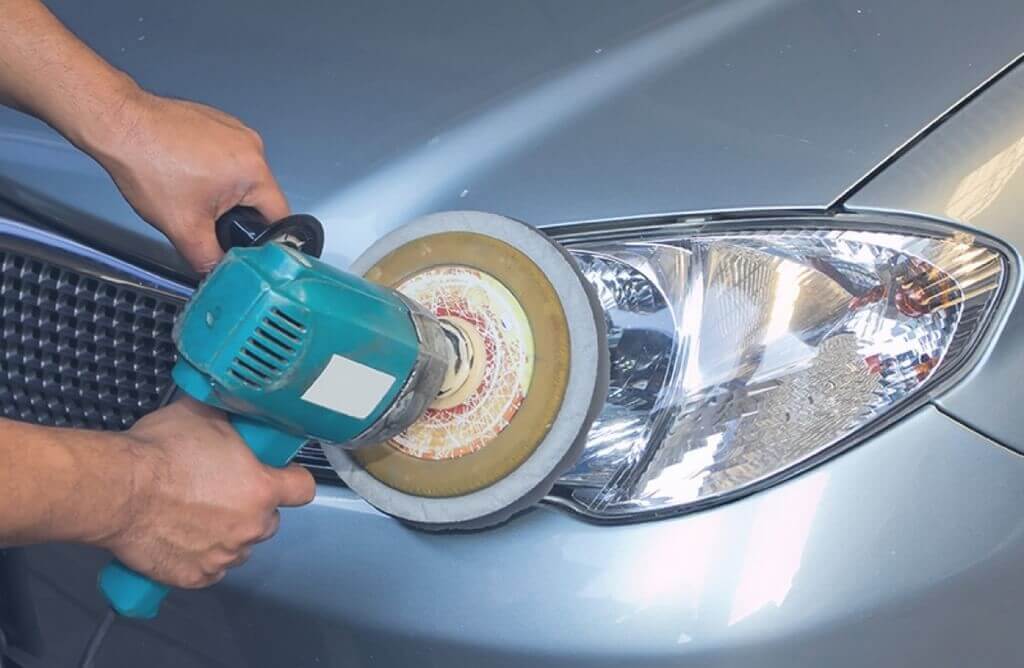 Механический метод направлен на удаление сильного помутнения и разветвленной сетки царапин. Здесь для выполнения работ потребуется машинка. А далее все зависит от наличия дополнительных материалов.