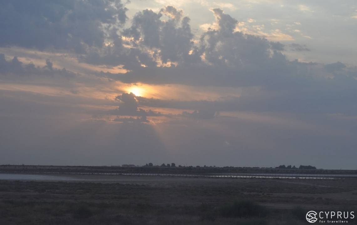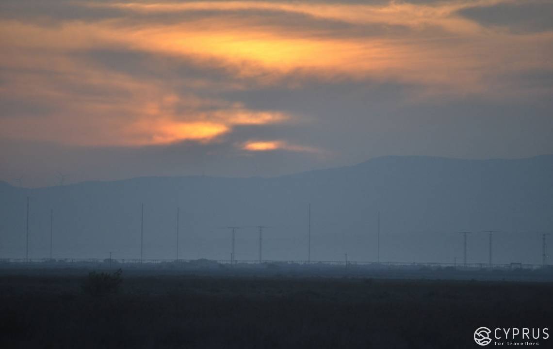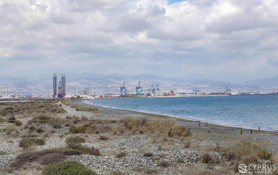 Помимо того, что пляж чистый и сравнительно пустой — он еще и очень живописный. Когда мы едем на машине — по левую сторону дороги: море. По правую — соленое озеро. За ним в дымке горы Троодоса. А сзади ощетинился высоченными стальными конструкциями главный порт Лимассола. Особенно красиво тут — хоть рыдай от умиления — в закатное время. Когда солнце садится в озеро и окрашивает облака и небо в сюрреалистический сиреневый цвет.