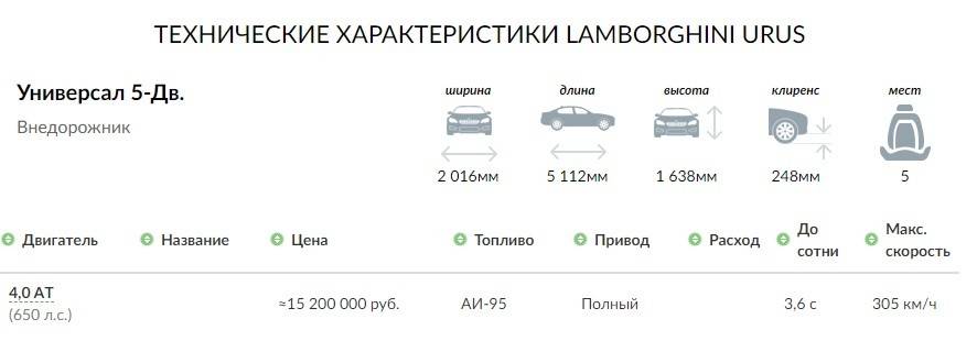 Ламборджини Урус — это пятиместный внедорожник премиум класса. Его габаритные размеры составляют: