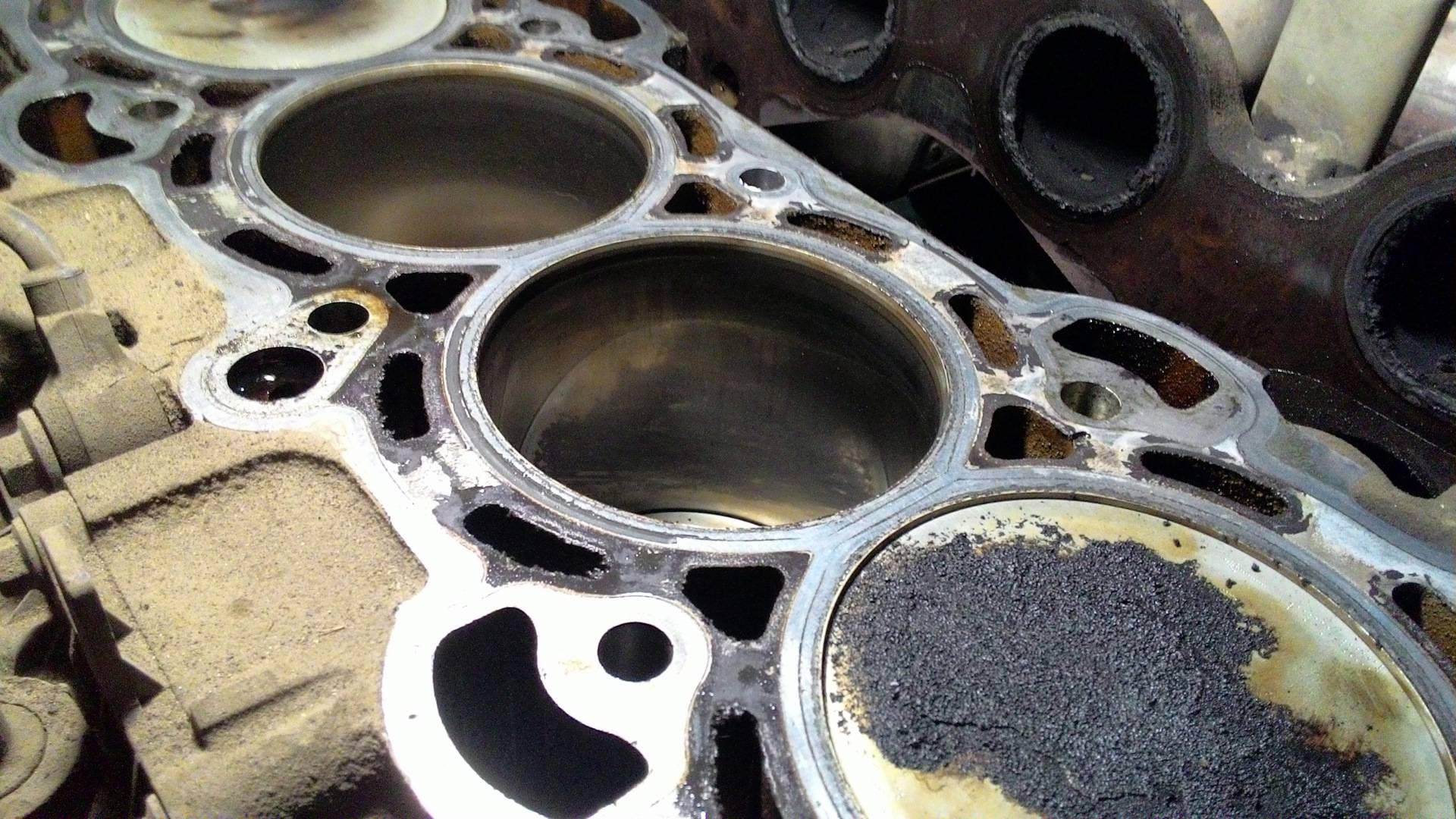 Износ цилиндров проявляется в увеличении их диаметра. Также могут появляться сколы, задиры, царапины. Такие повреждения создают своеобразные масляные карманы. Кольца не могут плотно перекрывать путь смазочному веществу, количество которого в моторе неизменно уменьшается.