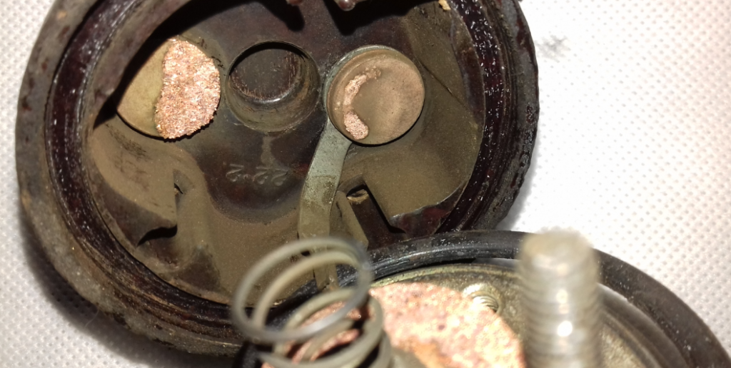 Вторая неисправность, при которой не происходит передачи напряжения между клеммами заключается в том что. На пятаке и клеммах в местах контакта образуется нагар. Или выгорание контактов. В результате одна из клемм становится короче м пятак до неё не достаёт. И даже если обмотки исправны из за того что нет контакта стартер не крутит.