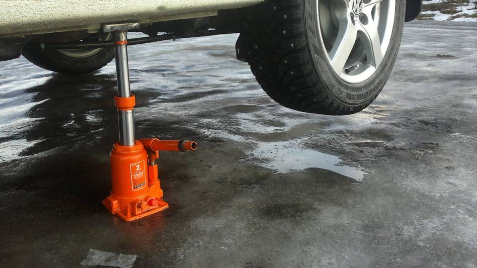 - при выполнении работ на улице после осадков лучше подложить под домкрат доску или другой твёрдый предмет. Оптимальный вариант – осуществлять все работы на твёрдом и ровном покрытии вроде бетона или асфальта;