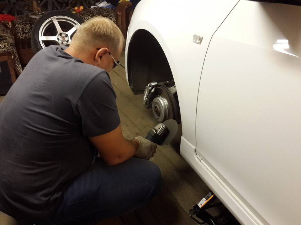 Наиболее простым способом проточки для таких автомобилей является использование наждачного круга. Для упрощения задачи в работе будет использоваться сила двигателя вашего авто. Для работы понадобится помощник. Производится проточка следующим образом: