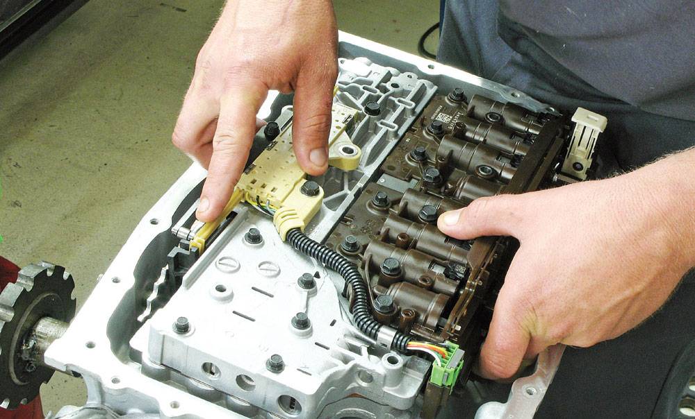 - Затем гидроблок устанавливается обратно на КПП. Ремонт окончен.