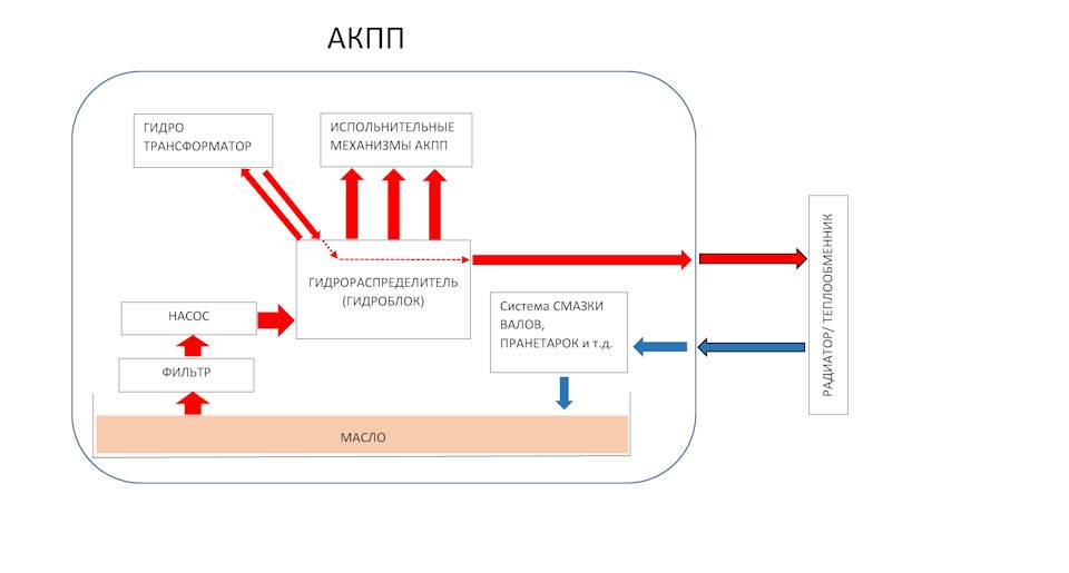 Итак, в первой части — покажем схему устройства системы охлаждения акпп, основные конструктивные особенности системы охлаждения АКПП