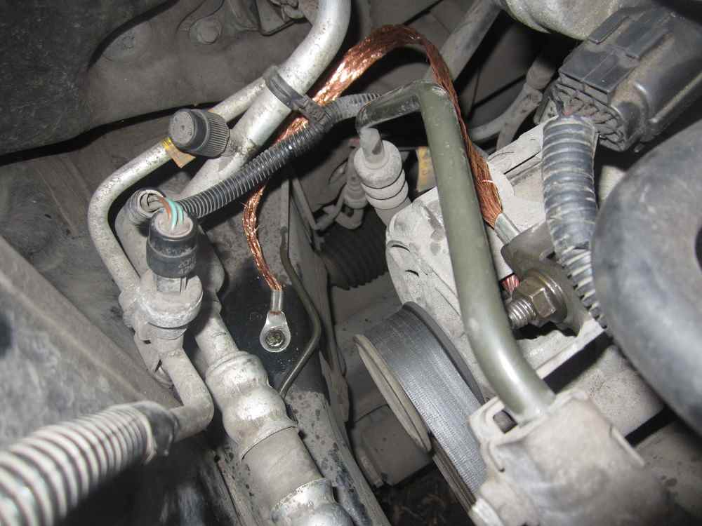 Далее мнения разделились. Одна половина мозга была за более простое решение – прикрутить этот дополнительный провод за болт крепления кронштейна трубки кондиционера