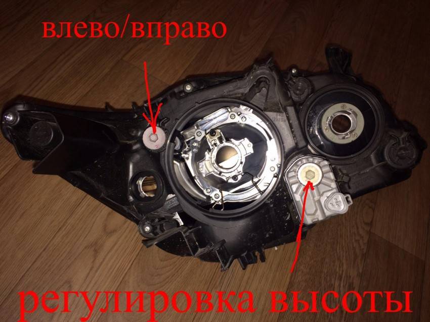 Настройка фар выполняется регулировочными винтами, расположенными с тыльной стороны оптического прибора