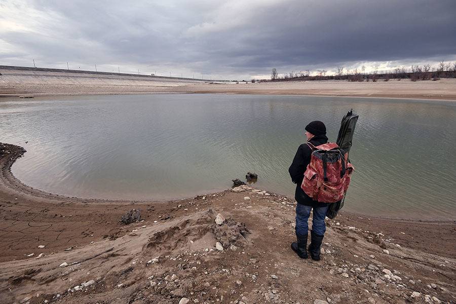 - Рыбак на Аянском водохранилище естественного стока в Симферопольском районе Крыма на реке Аян