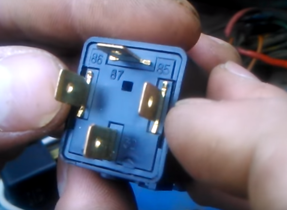 На оборотной стороне реле у нас подписанные контакты 85, 86 – это питание катушки реле на которые мы будем подавать напряжение при запуске двигателя. Контакты 30- общий +12 вольт и 87- контакт, идущий на клемму втягивающего реле стартера.
