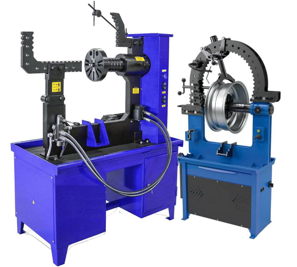 Универсальная станина для ремонта — это комбинированный подход к реставрации с использованием гидравлики и механики. Такие аппараты работают с диаметрами от 10 до 25 дюймов. Устраняют радиальное и осевое биение, восстанавливают место посадки резины и исправляют эллипсность. Ремонт такими аппаратами производится двумя способами: