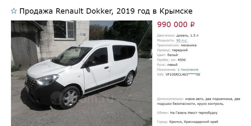 Предлагаемый на российском рынке Renault Dokker оценивается в 905 тыс. руб. и выше.
