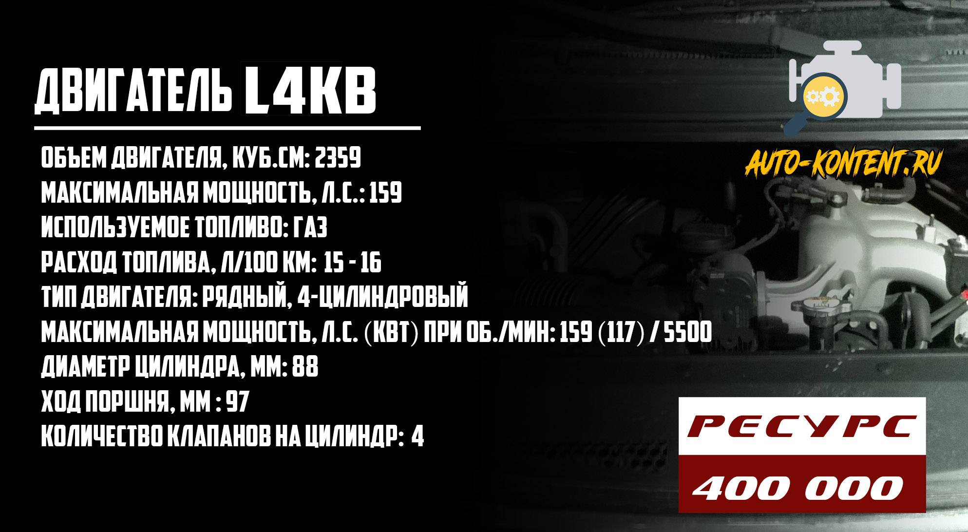 Этот силовой агрегат работает на газу, является модификацией бензинового двигателя G4KG, который производится с 2007 года. Мотора обладает мощностью 159 лошадиных сил при рабочем объеме 2.4 литра. У него рядная архитектура, четыре клапана на каждый цилиндр, диаметр цилиндров составляет 88 мм, а ход поршня 97 мм. Силовой агрегат с системой распределенного впрыска топлива. В пике выдает 230 Нм крутящего момента. Двигатель соответствует экологическим нормам Евро-4/5. Конструкция идентичная тому, что мы видели на G4KG – алюминиевый блок с чугунными гильзами,16-клапанная головка блока цилиндров без гидравлических компенсаторов, движок с цепным приводом ГРМ. Фактически отличия версии для работы на газу и бензиновой модификации отличается только в чуть меньшей мощности первого.