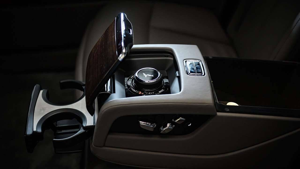 Мультимедиа – сенсорный дисплей с оболочкой iDrive от BMW. Без зажигания дисплей уезжает под панель торпедо Phantom. Он же управляется шайбой на выдвигающейся панели из подлокотника. Наверху шайбы изображен Дух экстаза и он же является тачпадом. На этом унификация с БМВ заканчивается, здесь все собственное, но с использованием возможностей баварцев.