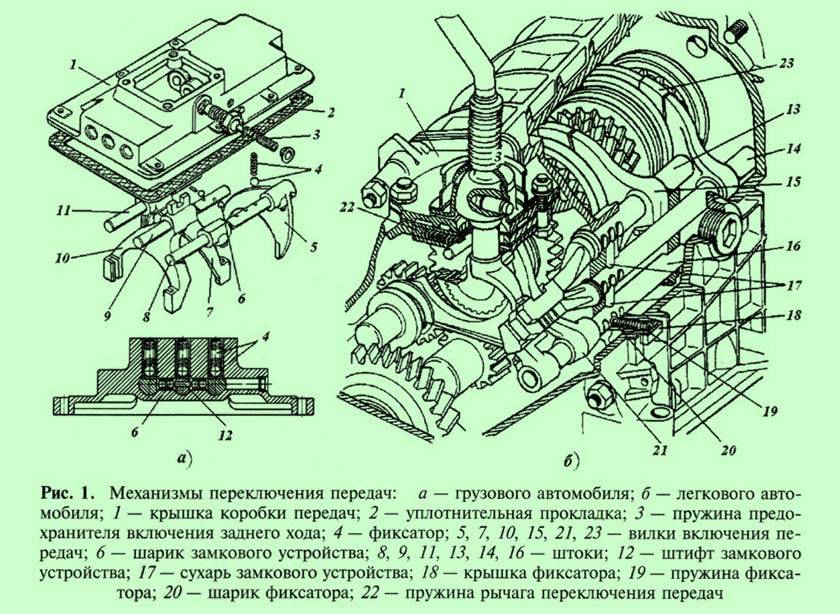 Механизм переключения коробки передач должен обеспечить правильное зацепление шестерен и не допускать самовыключения передачи, одновременного включения нескольких передач и включения заднего хода при движении автомобиля вперед.