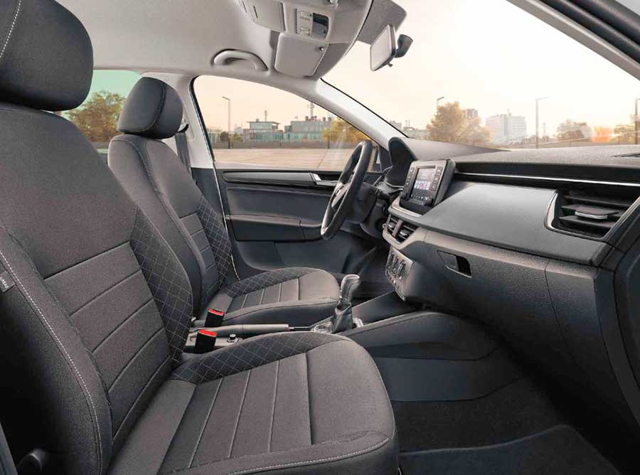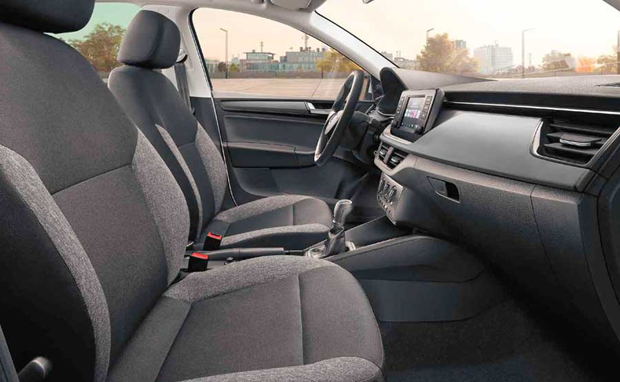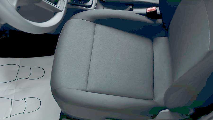 Вид отделки интерьера зависит от выбранной комплектации, и по стандарту предусматривается тканевая обшивка сидений.