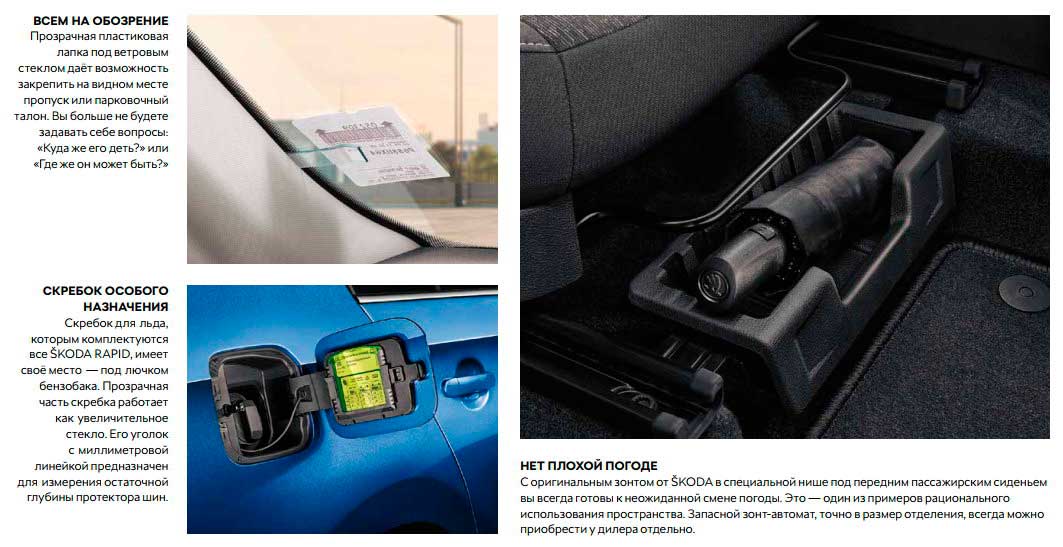 Какие детали и особенности салона хочется отметить в новом Шкоде Рапид в первую очередь: