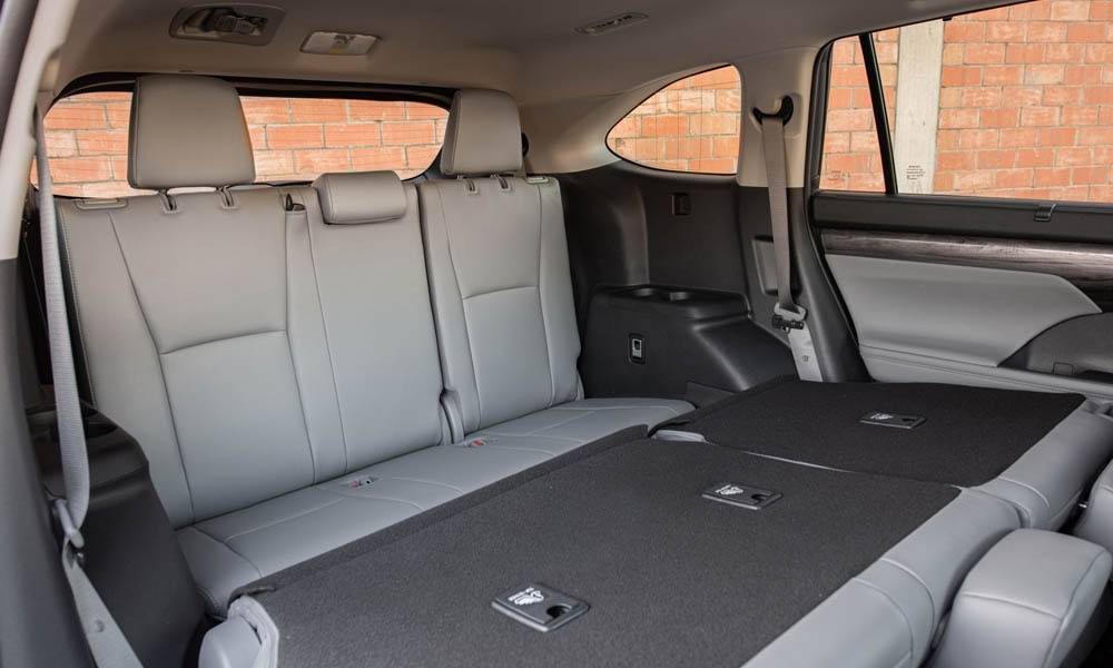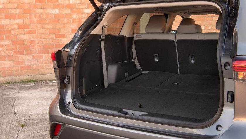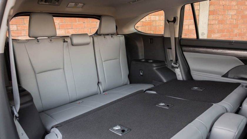 Объем багажного отсека у нового Highlander составляет 456 литров. При сложенном второго и третьем ряду сидений данный показатель увеличивается до 2075 литров.