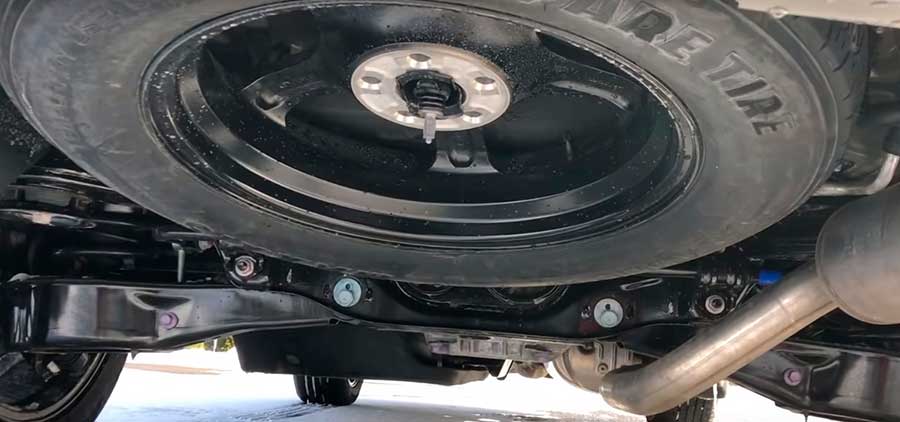 Запаска на этом внедорожнике вынесена за пределы багажного отсека, она находится под днищем автомобиля.