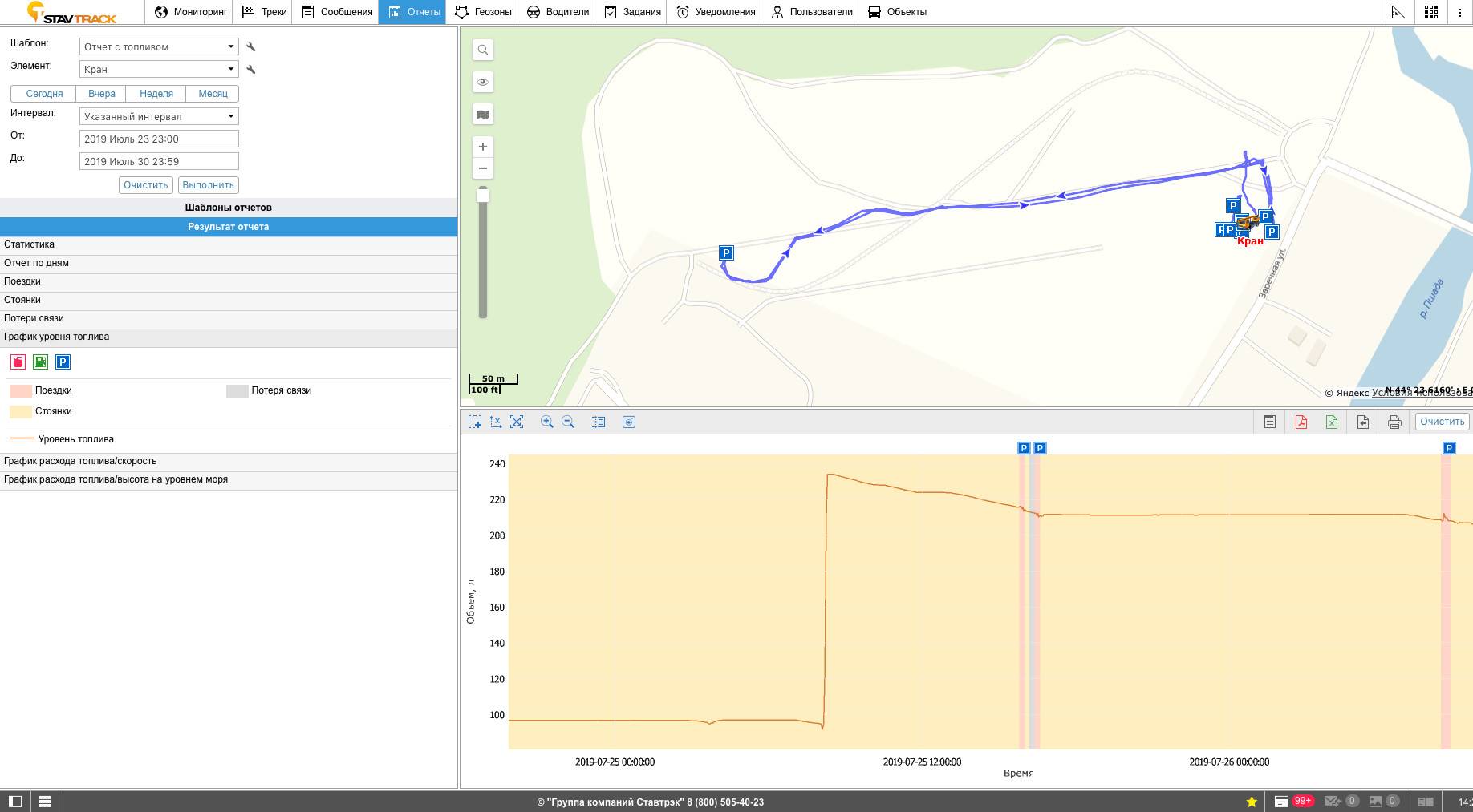 Если система включает в себя топливный датчик — вместе с текущим местонахождением транспорта передаются данные о текущем уровне топлива в баке.