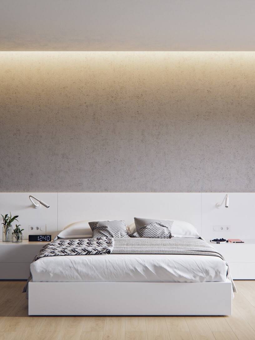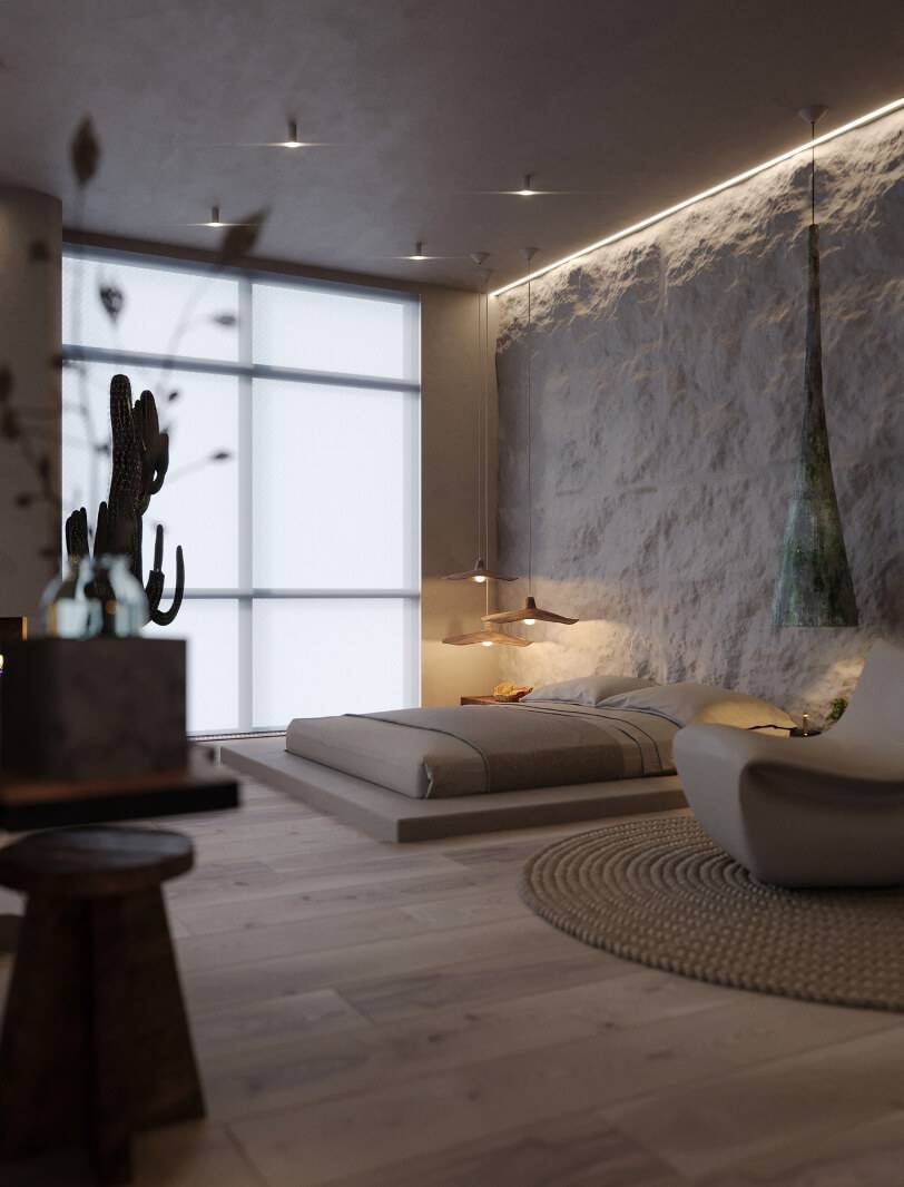 Освещение должно быть разнообразным: продумайте несколько источников света. Их можно разместить не только на потолке, но и встроить в шкаф, раздвижные перегородки, пол, стены. Лучше, чтобы свет был рассеянным.
