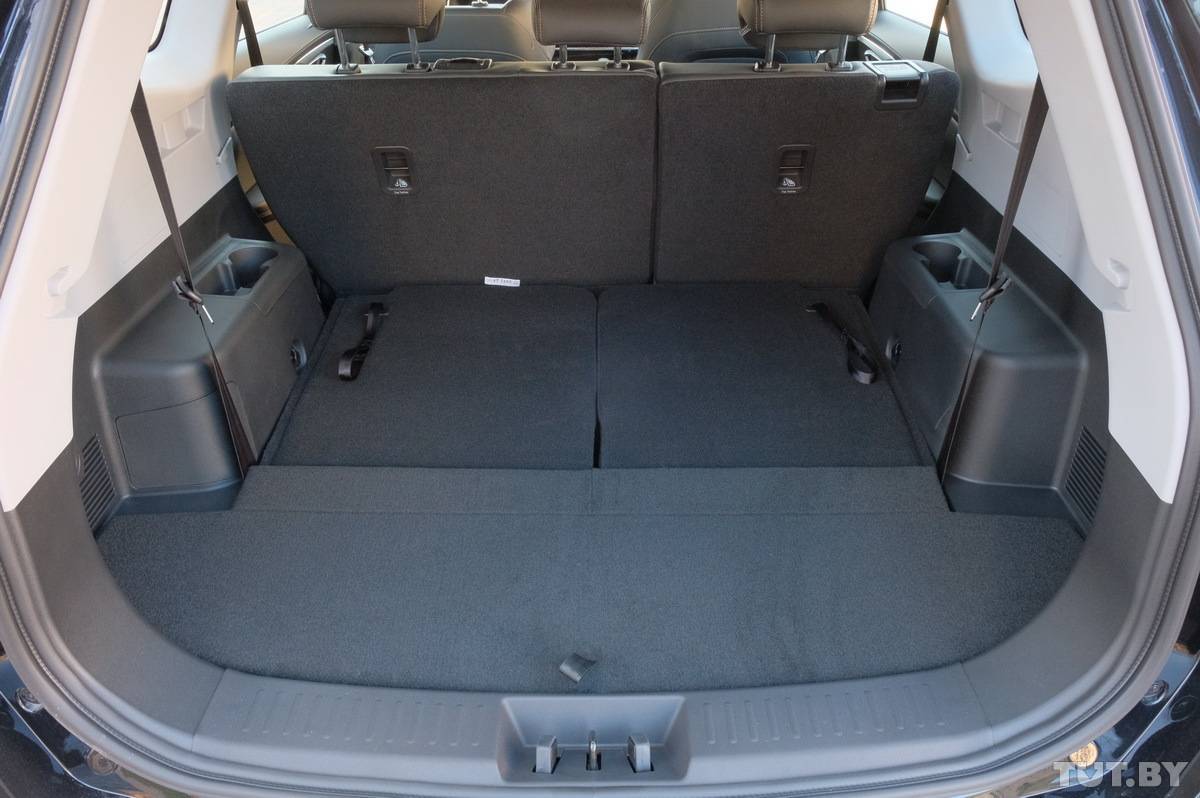 Когда кресла третьего ряда не нужны, они укладываются вровень с полом багажника. В семиместном варианте, кстати, о багаже можно забыть: объем багажного отделения составляет всего 193 литра. А вот в пятиместном варианте — уже 892 литра. Если сложить спинки и второго ряда, то получится 1930 литров. Почти два кубометра! Как же они мне пригодились во время тест-драйва: нужно было отвезти на дачу два взрослых велосипеда. Влезли со свистом, и осталось место для третьего.