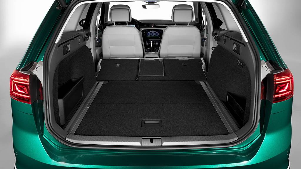 Багажный отсек у нового Passat в стандартном виде вмещает в себя до 586 литров груза, а при сложенных задних спинках — 1152 литра.