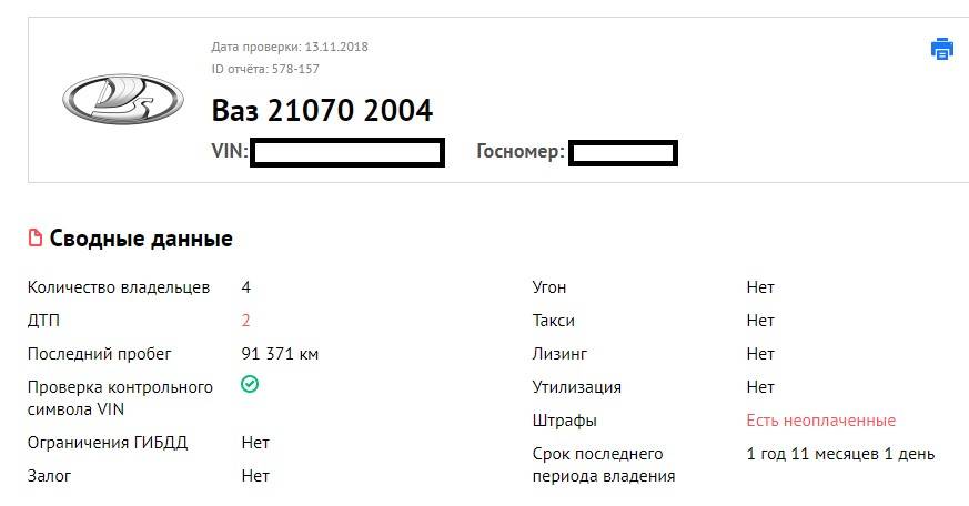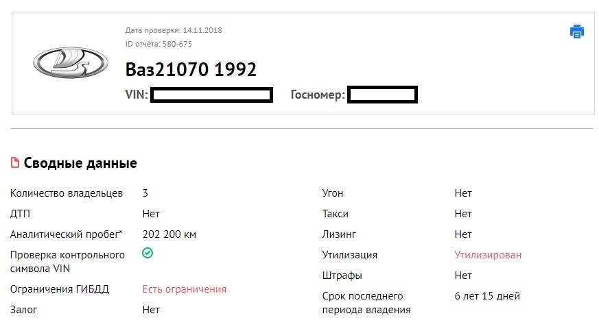 Главное, не наткнуться при покупке со вторички на утилизированный автомобиль. Да, такое тоже встречается. Отчёт в таком случае будет выглядеть вот так:
