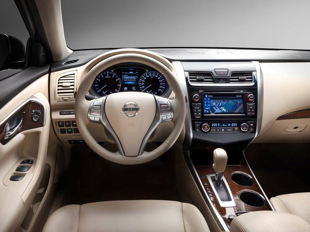 Практически во всех пресс-релизах компании Ниссан отмечено, что в разработке передних кресел для этой модели принимали участие специалисты агентства NASA. Находиться в них на самом деле очень комфортно и водителю, и переднему пассажиру. Эргономика осталась на прежнем, высоком, уровне. Центральная консоль очень похожа на консоль своего соперника, хотя не столь строга, как на Камри, но также удобна и информативна. Экран мультимедийной системы (Nissan Connect 2) расположен чуть ниже центральных воздуховодов, а под ним – управление климатической установкой автомобиля. Задний диван принимает пассажиров с еще большим, по сравнению с Камри, комфортом.