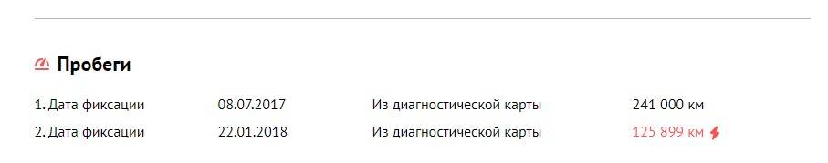 А вот неточности в пробегах уже дают повод задуматься перед покупкой. В 2017 году по диагностической карте фиксировалось 241 тысяча пробега. А в 2018 году — уже 125 т. км. Возможно пробег скручен. И если по общему состоянию кузова скрытый большой пробег может и не проявиться, то на внутренних системах и агрегатах это проявится на ближайшем ТО.