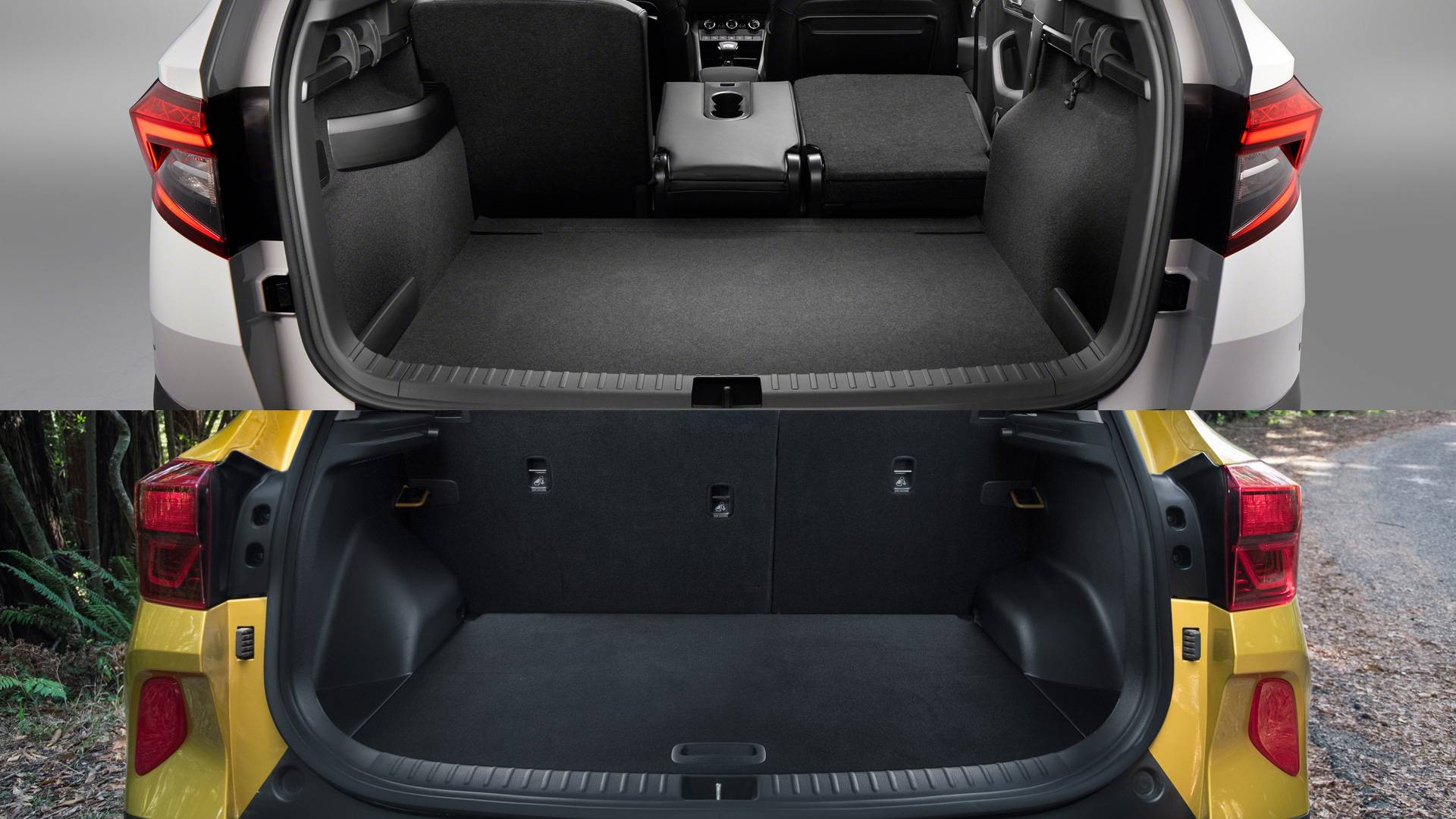 Чем конкуренты действительно отличаются, так это высотой дорожного просвета и объемом багажного отделения. У Шкоды клиренс равен примерно 160-164 мм, тогда как у Кии этот показатель дотягивает до приличных 190 мм. Зато минимальный объем багажника европейца – 521 л, тогда как у азиата – всего 433 л.