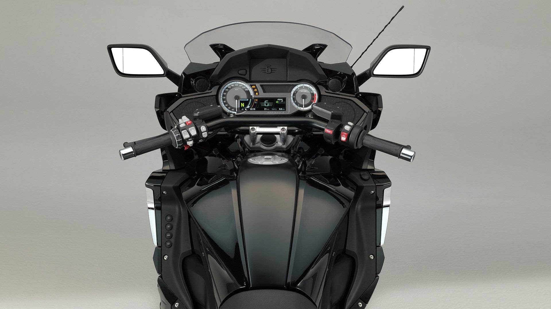 K 1600 B не имеет кабины, но есть панель управления в полном смысле этого слова. Слева спидометр с не очень читаемым цифрами, справа – тахометр, в центре большой цветной экран с большим количеством информации. Оранжевая буква R с левой стороны, сообщает, что включена передача заднего хода. Благодаря системе Keyless Ride место замка зажигания заняла большая клавиша start/stop (ключ/пульт дистанционного управления вы носите в кармане).