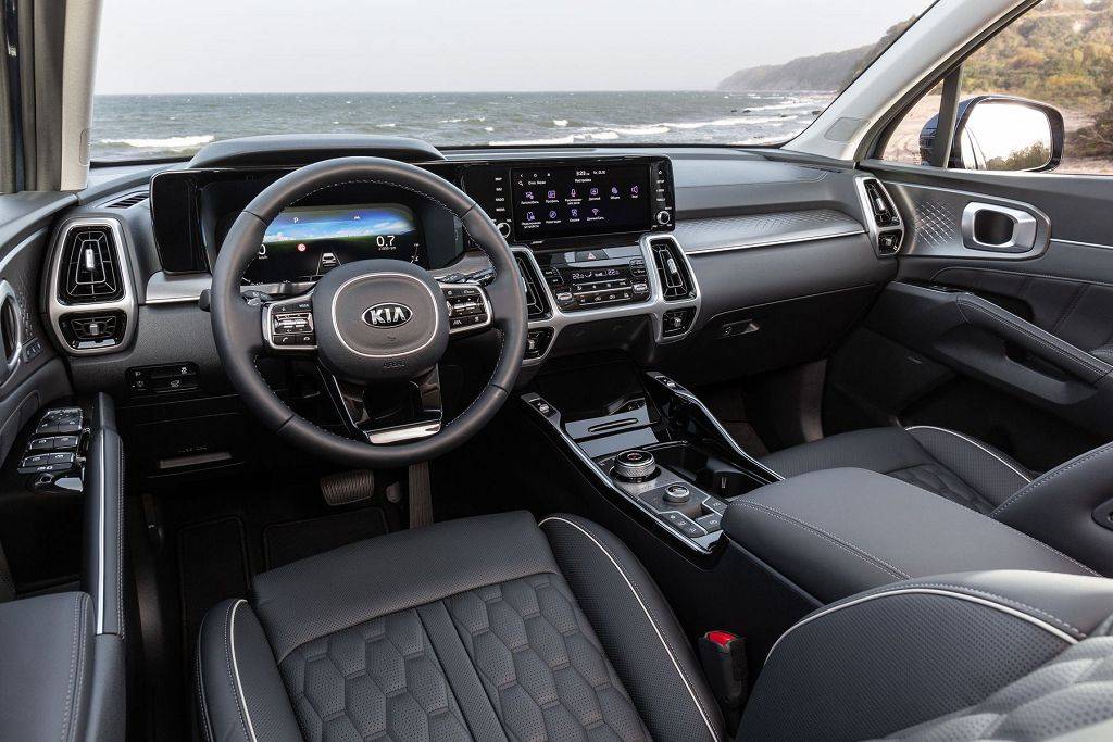 Внутреннее пространство Kia Sorento 2011 выполнено в европейском стиле. Это касается не только дизайна салона, но материалов отделки. Об азиатских корнях напоминает только узкий экранчик бортового компьютера, расположившийся аккурат над 8-дюймовым дисплеем мультимедийной системы. Центральная консоль лаконична и элегантна. Четырёхспицевый руль унизанный кнопками подчёркивает общую современность и функциональность. Приборная панель выполнена с намёком на спортивность.