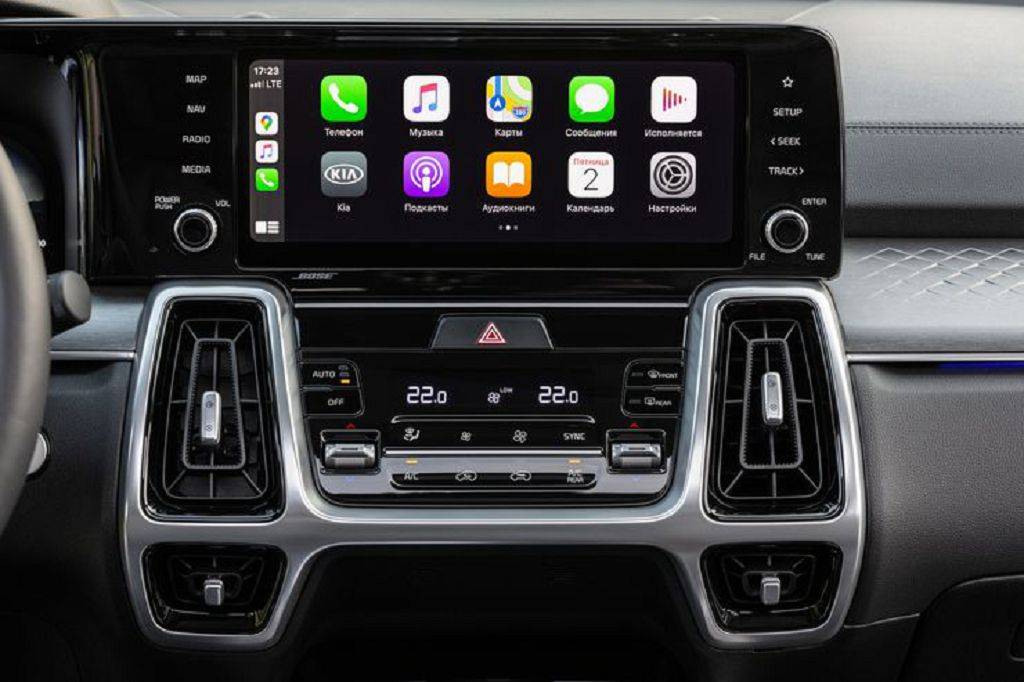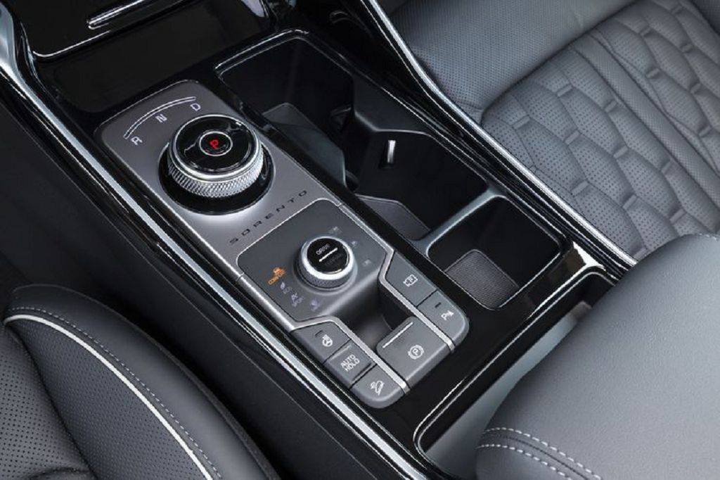 Окантованные хромом дефлекторы вентиляции выглядят стильно, а расположены не очень: нижняя секция дует в правое колено водителю. Хотя ручная механическая КПП на Соренто недоступна в принципе, рычаг переключения передач выполнен именно под такую, только в топе для робота более подходящая стилю шайба.