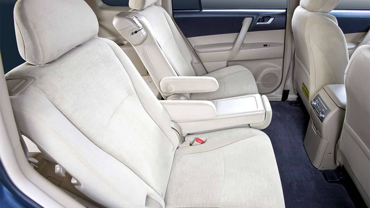 Кожа слабая, через несколько лет на водительском кресле появляются заломы. Сами сиденья Toyota Highlander XU40 удобные, с 8-диапазонной электрической регулировкой. Задний диван регулируется продольно, вдвоем там сидеть прекрасно, а центральному пассажиру очень неудобно. Третий ряд сидений маловат, лучше там перевозить детей. В хороших комплектациях сзади появляется свой климат-контроль.