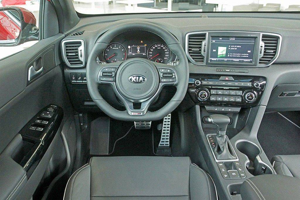 Теперь следует посмотреть на Kia Sportage. По салону сразу видно, что машина изначально стоит дешевле и относится к более бюджетной категории. Если сравнивать с Tiguan, интерьер оказался проще. Многие отмечают неудачно спроектированный центральный монитор, не самую выразительную приборную панель. На первый взгляд всё довольно неплохо, лаконично и гармонично. Но когда сопоставляешь салон Tiguan и Sportage, сразу начинаешь замечать огрехи и недоработки корейцев.