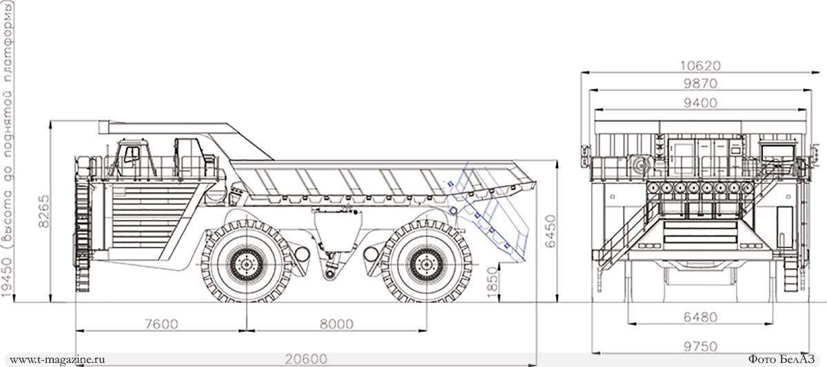 Еще одной конструктивной особенностью данной техники является система балансировки. Из-за своих больших габаритов карьерный тягач часто заваливался на бок, перевозя камни либо монолитную породу. Устранить эту проблему помогли изменения конструкции кузова: инженеры больше не применяют форму ковша. Кузов теперь имеет острый, глубокий угол сразу за передней стенкой. Такая форма позволяет сместить большую часть груза ближе к задней оси и глубоко вниз. Низкое расположение груза уменьшает высоту центра тяжести.