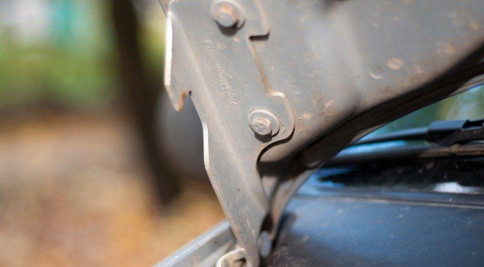 Второй момент — зазор капота. Конечно, его выставить проще. Но и это не всегда возможно. А если вам говорят про пробег в 50 тысяч км, то посмотрите на болты кронштейнов капота: их на этом пробеге никто трогать не должен. Если есть на них есть следы ключей — бегите оттуда, вас обманывают.