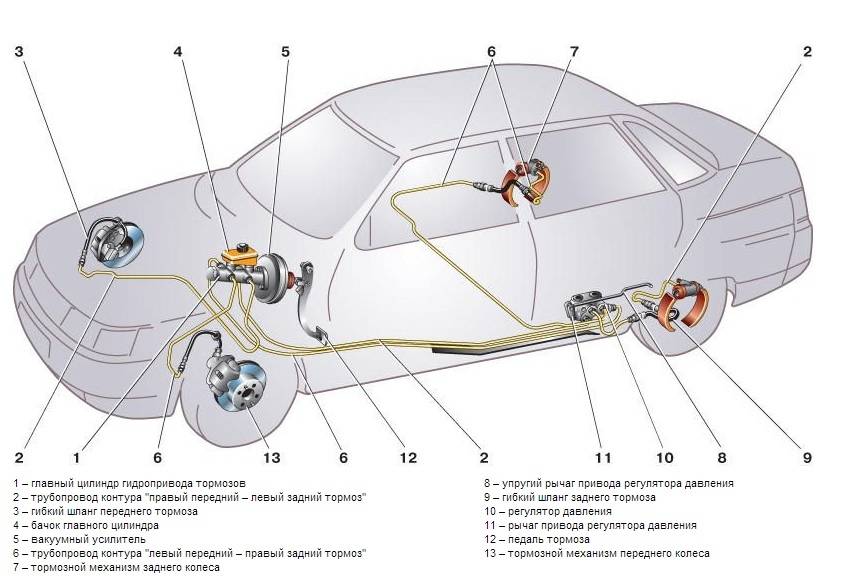 Назначение, характеристика, устройство тормозной системы автомобиля ВАЗ-2110