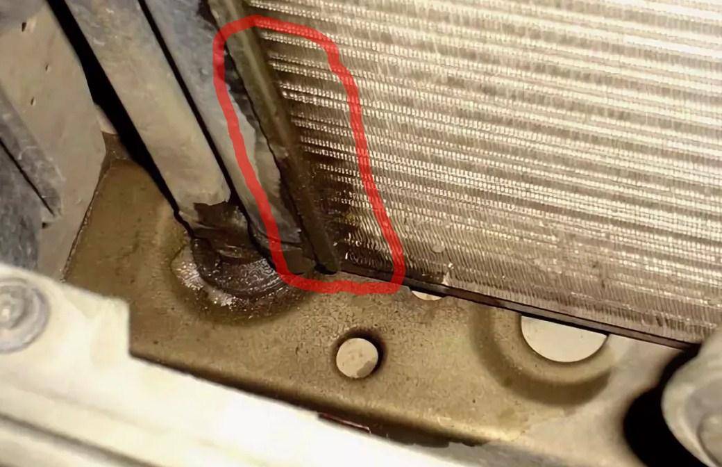 Это самые распространенные неисправности системы охлаждения. Диагностируются визуально, по намоканию грязи и по каплям антифриза под машиной. Выглядит это визуально вот так: