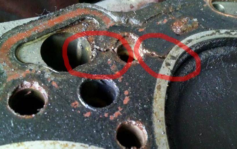 Попадание антифриза в цилиндры может сопровождаться белым дымом из выхлопной трубы, что является результатом сгорания ОЖ. В случае неправильной установки прокладки либо её прогорания, в расширительном бачке иногда можно наблюдать пузыри воздуха. Эксплуатировать автомобиль с такой неисправностью нельзя, поскольку велика вероятность повреждения головки с последующим дорогостоящим ремонтом. Устраняется неисправность путём замены уплотнителя своими силами либо в автосервисе.