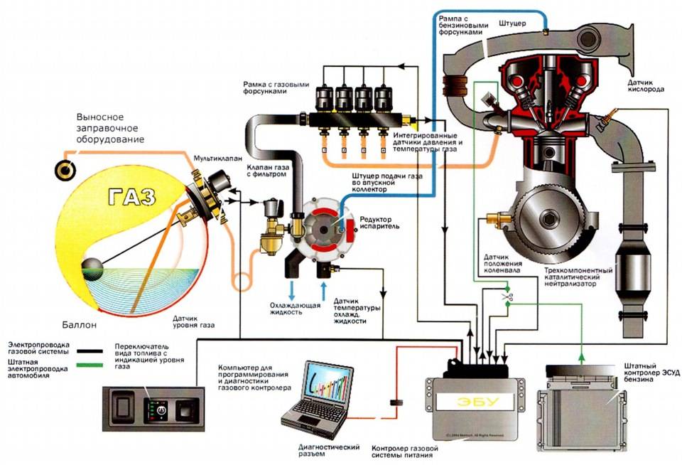 Использование в работе ГБО 4 поколения этих двух систем оправдано, поскольку неиспользование бензиновых форсунок, а также отсутствие бензина в баке приведет к выходу из строя бензонасоса и форсунок.