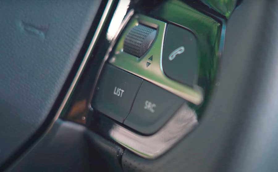 - Следует отметить продуманную компоновку и удобный доступ к панелям настройки микроклимата, навигационного оборудования и современного по параметрам аудиокомплекса. Часть аналоговых элементов управления установлена на утолщенных спицах рулевого колеса.