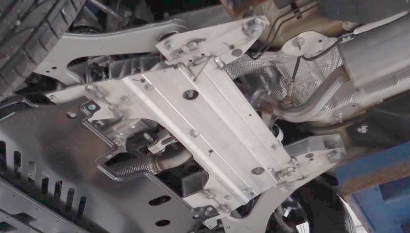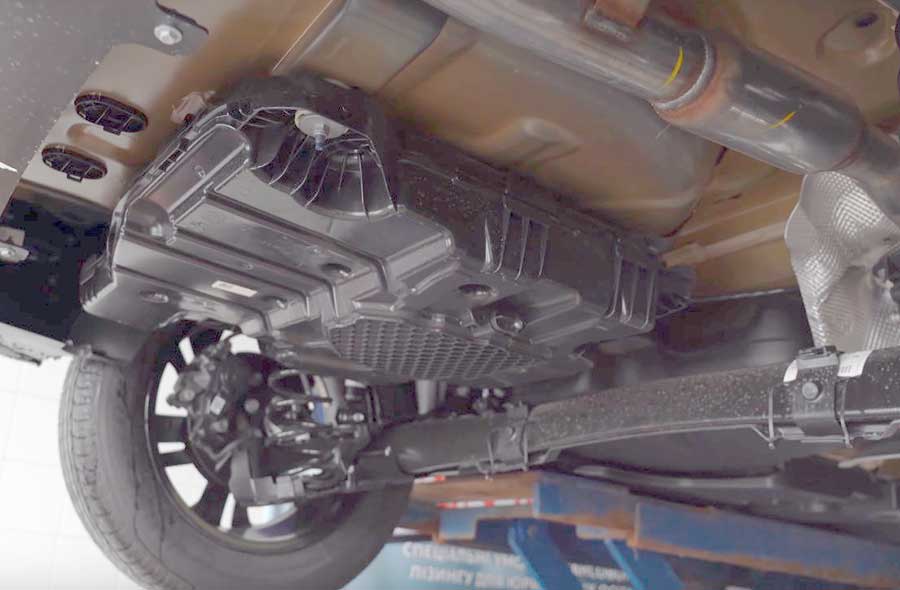 Площадь широкого пластикового обвеса включает в себя воздухозаборник и два боковых углубления с интегрированными противотуманными фарами. Защитные функции возложены на массивную металлическую накладку.