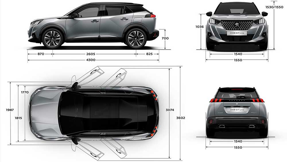 У автомобиля Пежо 2008 2020 комплектации и цены технические характеристики изменились в полном соответствии с текущими тенденциями в Европе. В частности, уменьшились объёмы двигателей (так ниже расход топлива). Существенно выросли многие габариты. Но подвесная система технически осталась прежней.
