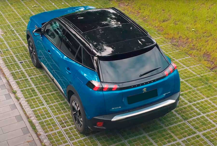 Красивой вышла корма с тонкими светодиодными фонарями, соединенные черной накладкой. После фонарей крышка Peugeot 2008 немного раздувается. Бампер почти полностью пластиковый и здесь опять же есть серебристая накладка. Под бампером интересно интегрированные 2 прямоугольные насадки выхлопа.