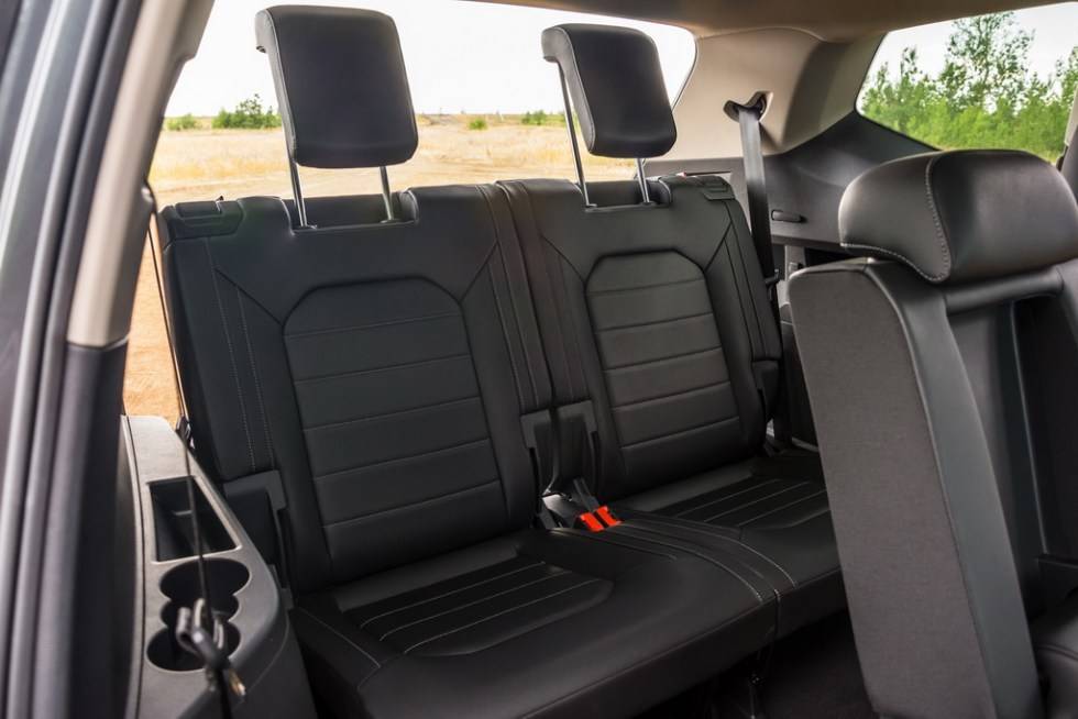 Teramont может похвастать семиместным салоном уже в базовом исполнении, причём места на третьем ряду полноценные, а не детские: два человека ростом не выше 180 сантиметров не почувствуют никаких неудобств ни над головой, ни для ног (свободное пространство между креслом второго ряда и креслом третьего составляет 86 сантиметров). Доступ на “галерку” свободный, сидение среднего ряда складывается и раскладывается легко, и фиксируется приятным щелчком. Трансформация салона вообще сильная черта Volkswagen: все механизмы работают как часы и для изменения конфигурации требуется минимум усилий.