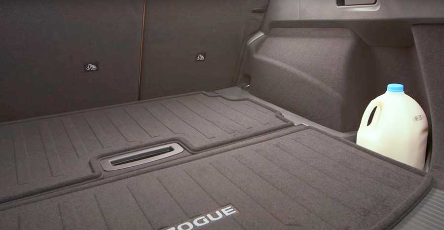 Внедорожник Х-Трейл (Роуг) 2021 имеет достаточно большой и функциональный грузовой отсек, и теперь его профиль не округлый, как раньше, а прямоугольный, что позволяет проще и удобнее осуществлять погрузку/выгрузку вещей.